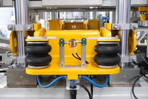 ● நியூமேடிக் டேம்பர் ஹெட் கிளாம்பிங் சாதனம்: டேம்பர் ஹெட் ஒரு கிளாம்பிங் சாதனம் மூலம் சரி செய்யப்பட்டது ஏர்பேக்குகள் மூலம், எளிதில் மற்றும் விரைவாக டம்பர் தலையை மாற்ற அனுமதிக்கிறது, அச்சு மாற்றத்தை குறைக்கிறது நேரம், மேலும் மோல்ட் பிரேம் மற்றும் டேம்பர் ஹெட் இடையே துல்லியமான நறுக்குதலை உறுதி செய்கிறது.