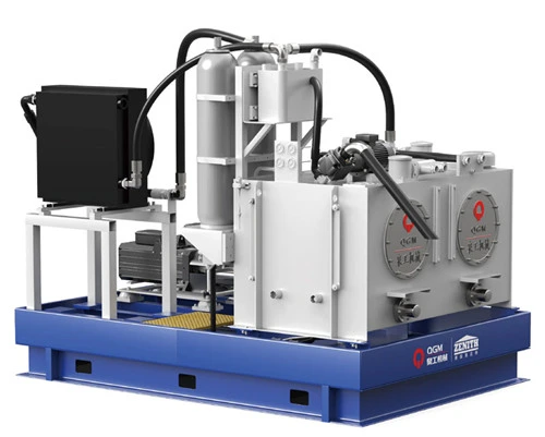பிரஷர் ஹெட், மோல்ட் பிரேம், அக்ரிகேட் கார் மற்றும் ஃபேப்ரிக் கார் ஆகியவை டேம்பர் ஹெட், மோல்ட் ஃபிரேம், பேஸ்-மிக்ஸிற்கான ஃபீடிங் பாக்ஸ் மற்றும் ஃபேஸ்-மிக்ஸ் ஆகியவற்றால் கட்டுப்படுத்தப்படுகின்றன. வால்வு மைய பின்னூட்டத்துடன் விகிதாசார திசை வால்வுகள் மூலம், குறுகிய மறுமொழி நேரங்களை வழங்குகிறது. மூடிய- -லூப் கட்டுப்பாட்டு அமைப்பு (இடப்பெயர்ச்சி ஆட்சியாளர் / குறியாக்கி -PLC- -விகிதாசார திசை வால்வு-ஆயில் சிலிண்டர்) வேகமான மற்றும் நிலையான எண்ணெய் உருளையுடன் துல்லியமான கட்டுப்பாட்டை உறுதி செய்கிறது இயக்கம். ஹைட்ராலிக் நிலையம் ஒரு மாறி இடப்பெயர்ச்சி பிஸ்டன் பம்ப் பயன்படுத்துகிறது, இது நிறுத்தப்படும் ஹைட்ராலிக் அமைப்பு செட் அழுத்தத்தை அடையும் போது அழுத்த எண்ணெயை உந்தி, இறக்குகிறது பம்ப் மற்றும் ஆற்றல் நுகர்வு குறைக்கும். ஹைட்ராலிக் நிலையம் ஒரு பொருத்தப்பட்டுள்ளது துணை எண்ணெய் விநியோகத்திற்கான குவிப்பான், பல செயல்களை ஒரே நேரத்தில் செய்ய அனுமதிக்கிறது. நிலையான ஹைட்ராலிக் அமைப்பு அழுத்தம். கணினியில் அழுத்தம் சென்சார் உள்ளது, இது எளிதாகக் கண்காணிப்பதற்கான ஆபரேஷன் பேனலில் காட்சிப்படுத்துகிறது, அத்துடன் வெப்பநிலை சென்சார், எண்ணெய் வெப்பநிலையை திறம்பட கட்டுப்படுத்த மற்றும் நல்ல ஹைட்ராலிக் எண்ணெயை பராமரிக்க குளிர்ச்சியான மற்றும் ஹீட்டர் செயல்திறன்.