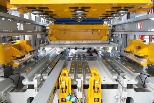 அச்சு முக்கிய இயந்திர நிலையில் அமைந்திருக்கும் போது, ஏற்றுதல் அமைப்பு உணர்கிறது விரைவான அச்சு மாற்றும் சாதனத்தில் தானியங்கி அச்சு மாற்றம். டம்பர் தலை மற்றும் அச்சு நியூமேடிக் ஸ்டேஷன் மூலம் சட்டமானது தானாக இறுகிவிடும், இது பாதுகாப்பானது, திறமையானது, செயல்பட எளிதானது மற்றும் பராமரிக்க வசதியானது.