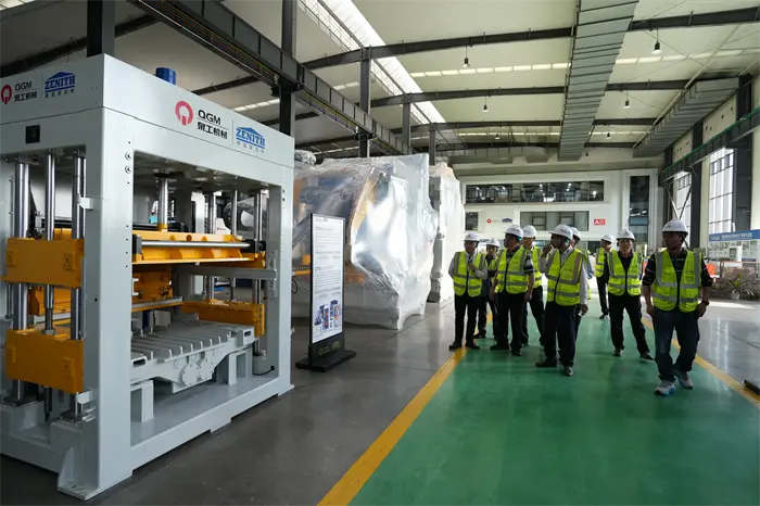 பின்னர், விருந்தினர்கள் செங்கல் மாதிரி காட்சிப் பகுதிக்குச் சென்று, பல்வேறு உயர்தர ஊடுருவக்கூடிய செங்கற்கள், நடைபாதை செங்கல்கள், தொகுதிகள் மற்றும் QGM உபகரணங்களால் தயாரிக்கப்பட்ட பிற பொருட்களைப் பார்த்து, நிறுவனத்தின் "திடக்கழிவு மறுசுழற்சி" தொழில்நுட்ப சாதனைகளில் மிகுந்த ஆர்வத்தை வெளிப்படுத்தினர். செங்கல் தயாரிக்கும் உபகரணக் காட்சிப் பகுதியில், தலைவர் லின் போகியனும் அவரது கட்சியினரும், முழுமையான தானியங்கி பிளாக் உருவாக்கும் இயந்திரம் மற்றும் QGM ஆல் சுயாதீனமாக உருவாக்கப்பட்ட நுண்ணறிவு உற்பத்தி வரிசை போன்ற முக்கிய உபகரணங்களை உன்னிப்பாக ஆய்வு செய்தனர், மேலும் தொழில்நுட்ப நன்மைகள் மற்றும் சந்தை பயன்பாட்டு வாய்ப்புகளை அந்த இடத்திலேயே பரிமாறிக்கொண்டனர். தலைவர் லின் போ, உயர்நிலை உபகரணங்கள் உற்பத்தி மற்றும் பசுமையான கட்டுமானப் பொருட்கள் ஆகிய துறைகளில் QGM இன் சிறந்த பங்களிப்பை முழுமையாக உறுதிப்படுத்தினார், மேலும் வலியுறுத்தினார்: "QGM என்பது Quanzhou இல் உள்ள தனியார் நிறுவனங்களின் ஒரு புதுமையான மாதிரியாகும். எதிர்காலத்தில் ஒரு பாலமாக கூட்டமைப்பின் பங்கை மேலும் வகிப்பதாக நாங்கள் நம்புகிறோம்." உலகளாவிய." துணைப் பொது மேலாளர் ஃபு ஹுவாபின், நிறுவனம் ஆராய்ச்சி மற்றும் மேம்பாட்டில் முதலீட்டை தொடர்ந்து அதிகரிக்கும் என்றும், அறிவார்ந்த உபகரணங்கள் மற்றும் பசுமை உற்பத்தியின் ஒருங்கிணைந்த வளர்ச்சிக்கான புதிய வாய்ப்புகளை ஆராய அனைத்து தரப்பு கூட்டாளர்களுடன் இணைந்து பணியாற்றும் என்றும் பதிலளித்தார்.