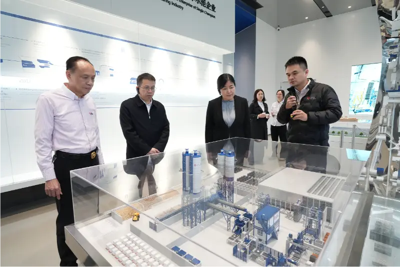 பிரதிநிதிகள் குழு முதலில் நிறுவனத்தின் வரலாற்று கண்காட்சி அரங்கை பார்வையிட்டது. நிறுவனத்தின் நிர்வாகிகள் வழிகாட்டுதலின் பேரில், குவாங்காங் மெஷினரி கோ., லிமிடெட் நிறுவனத்தின் பல்வேறு பெருமைகள், சான்றிதழ்கள் மற்றும் தொழில்நுட்ப சாதனைகளை ஆய்வு செய்து, நாற்பது ஆண்டுகளுக்கும் மேலான வளர்ச்சிப் பயணத்தின் விரிவான கண்ணோட்டத்தைப் பெற்றனர். ஒரு முக்கியத் தொழிலாக உற்பத்தி செய்வதில் உறுதியான அர்ப்பணிப்பு மற்றும் அதன் தொடர்ச்சியான கண்டுபிடிப்புகளின் தத்துவம், தனியார் பொருளாதாரத்தின் பரந்த வளர்ச்சியின் தெளிவான நுண்ணுயிர் என அங்கீகரித்த பிரதிநிதிகள் குழு நிறுவனத்தை பாராட்டியது.