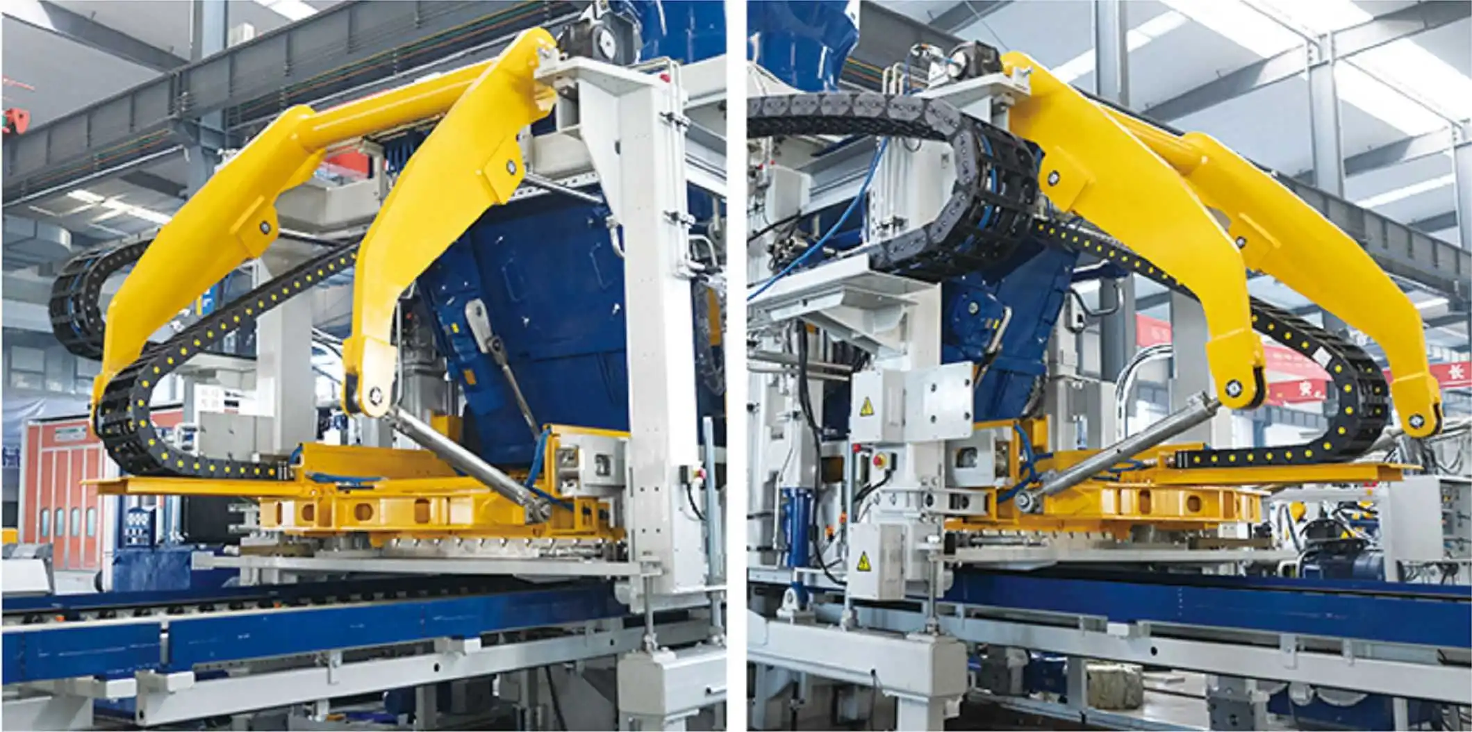 ஒரு உறுதியான ஸ்விங் ஆர்ம் வகை பொருள் விநியோகத்தை ஏற்று, உணவளிக்கும் திறன் அதிகமாக உள்ளது; பொருள் விநியோக கார் ஒரு பெரிய விட்டம் கொண்ட வழிகாட்டி சக்கரத்தை ஏற்றுக்கொள்கிறது, மேலும் மெட்டீரியல் கார் டிராக் மாற்றக்கூடிய உடைகள்-எதிர்ப்பு தட்டு வடிவமைப்பை ஏற்றுக்கொள்கிறது, இது வலுவான பொருள் விநியோக நிலைத்தன்மை மற்றும் வசதியான பராமரிப்பைக் கொண்டுள்ளது; பொருள் விநியோக தளம் எளிதான பராமரிப்புக்காக மாற்றக்கூடிய உடைகள்-எதிர்ப்பு தட்டு வடிவமைப்பை ஏற்றுக்கொள்கிறது. உணவளிக்கும் பகுதி எளிதில் பராமரிக்கவும் சுத்தம் செய்யவும் ஹைட்ராலிக் பூட்டினால் திறக்கக்கூடியதாகவும் பூட்டப்பட்டதாகவும் வடிவமைக்கப்பட்டுள்ளது.